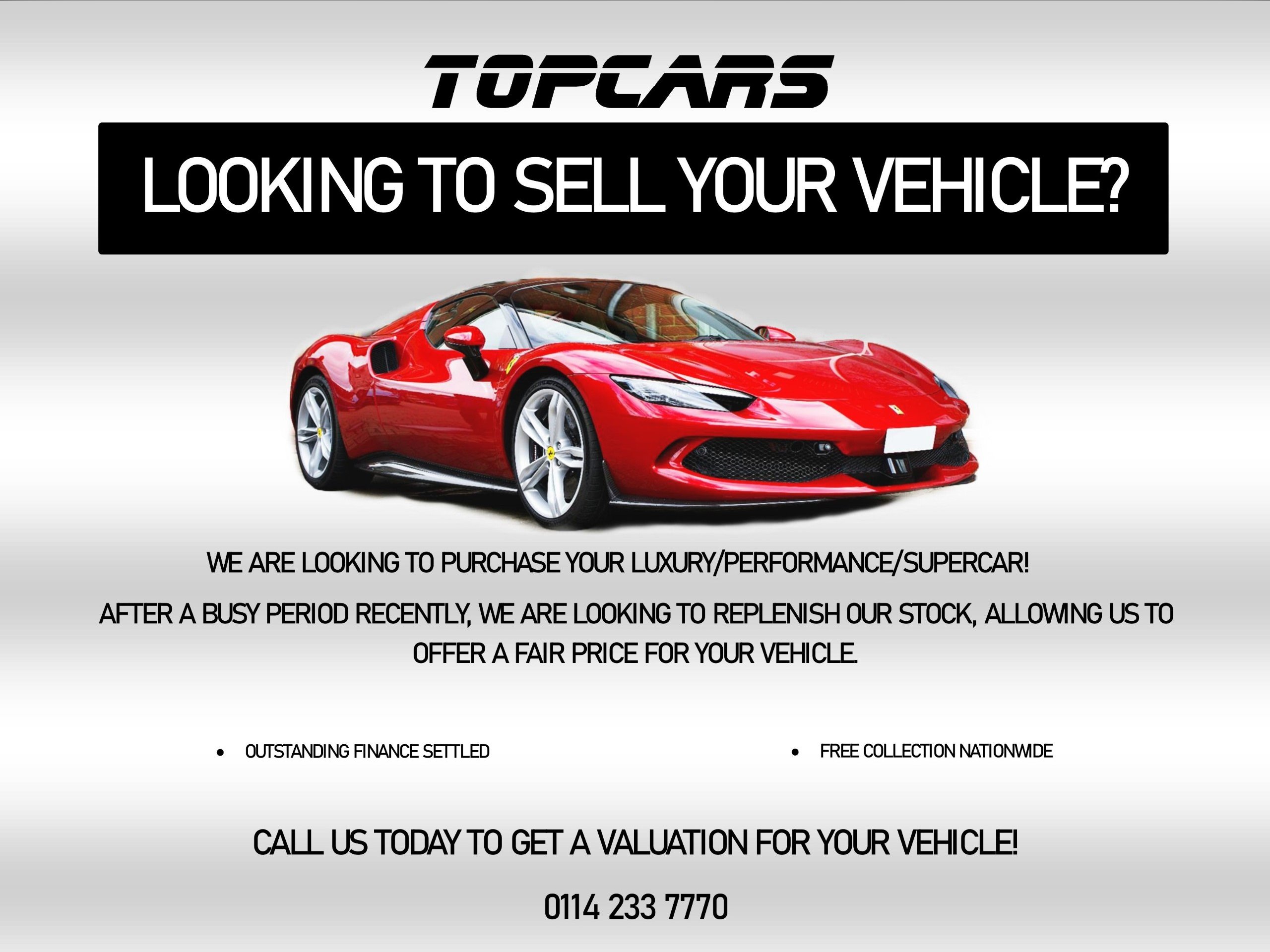 WE ARE ALWAYS LOOKING TO PURCHASE PERFORMANCE, LUXURY, SUPERCARS WITH NATIONWIDE COLLECTION.