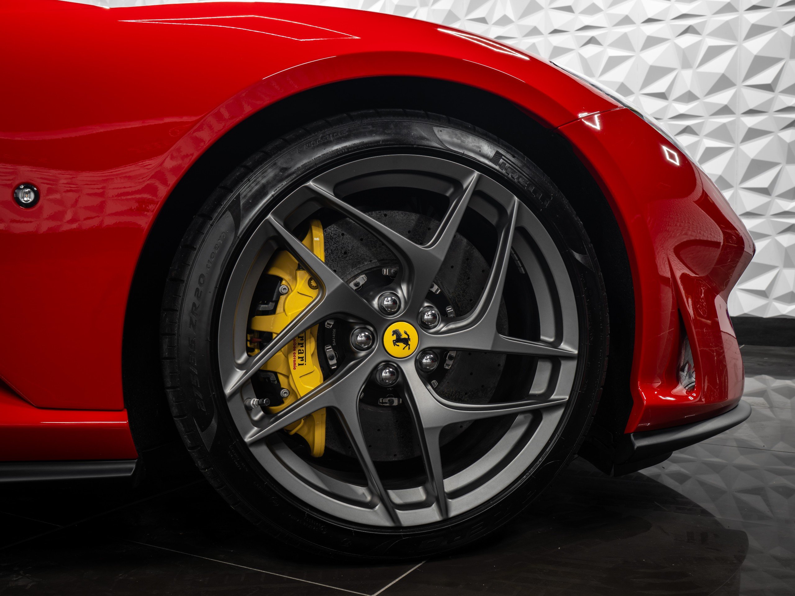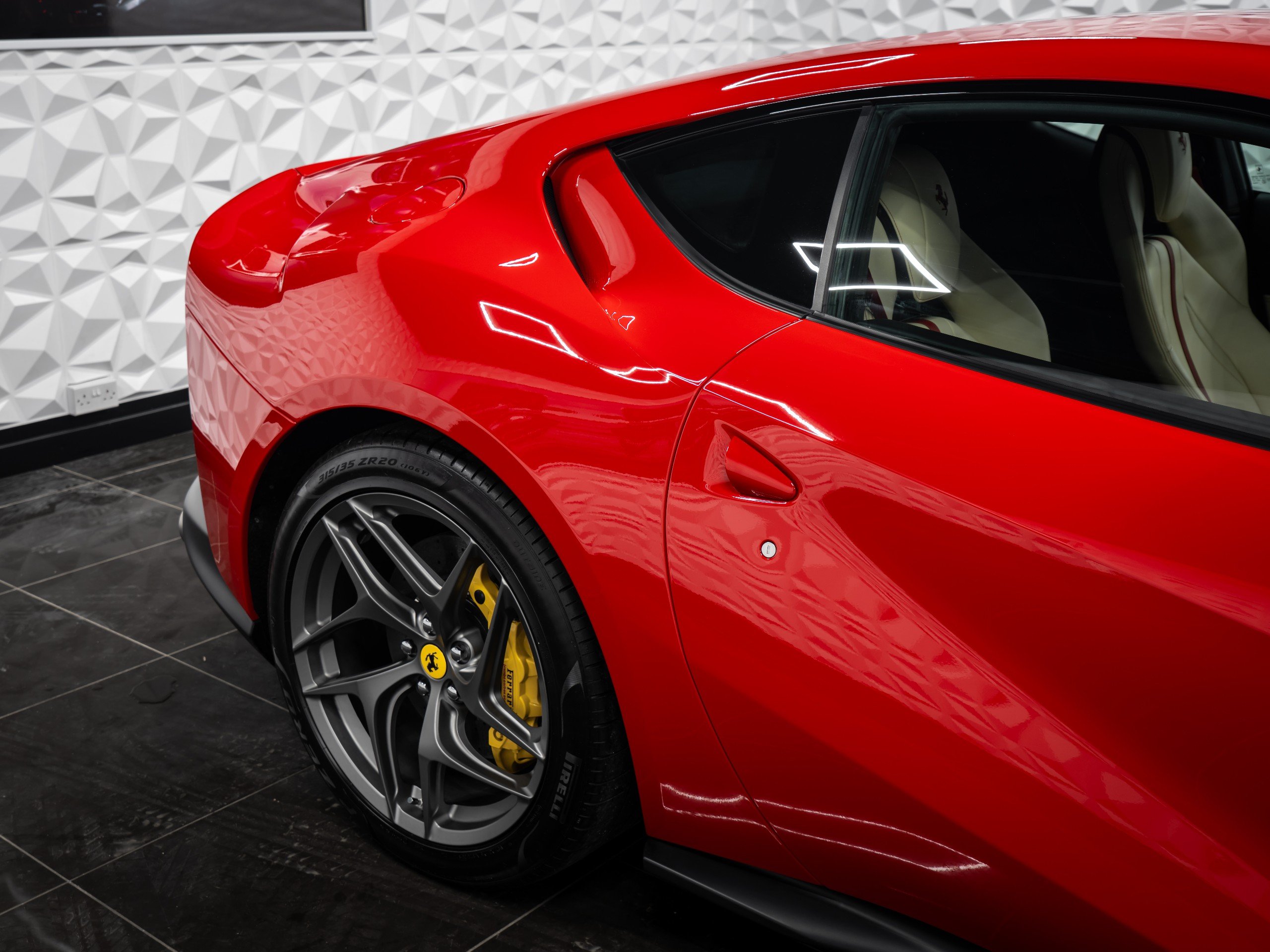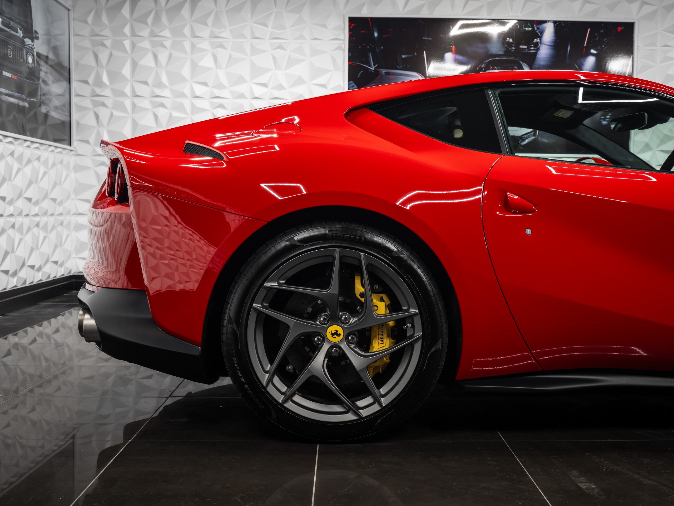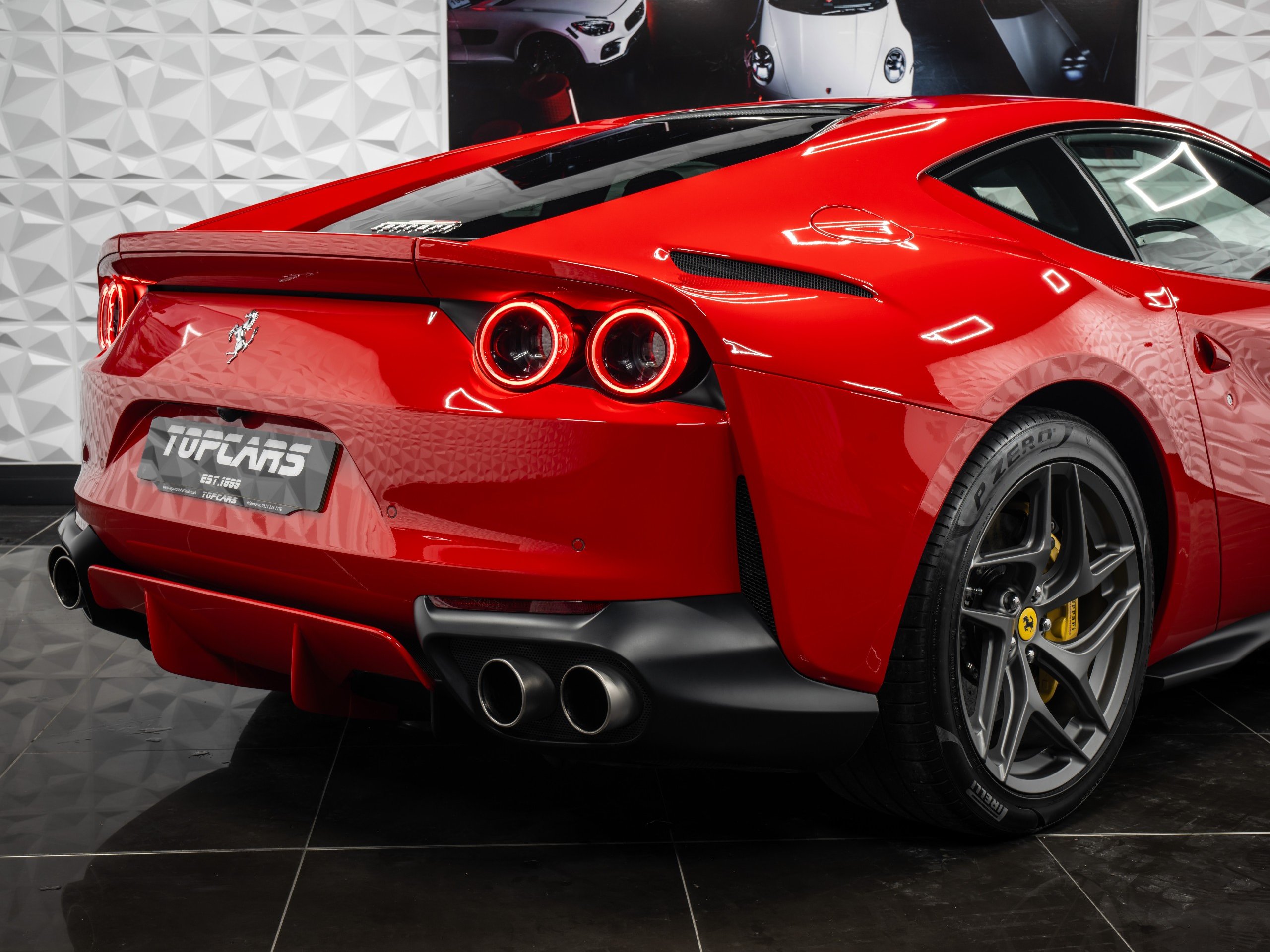 Externally You Are Greeted By Rosso Corsa Paintwork, Scuderia Ferrari Shields, Yellow Brake Calipers, Carbon Ceramic Braking System, 20 Inch Dark Forged Alloy Wheels, Dark Tinted Boot Glass And Rear View Camera. This 812 Superfast Benefits From Being Last Of Pre-GPF Model Meaning The Sound Isn't Muted And Gives Pure V12 Sound.