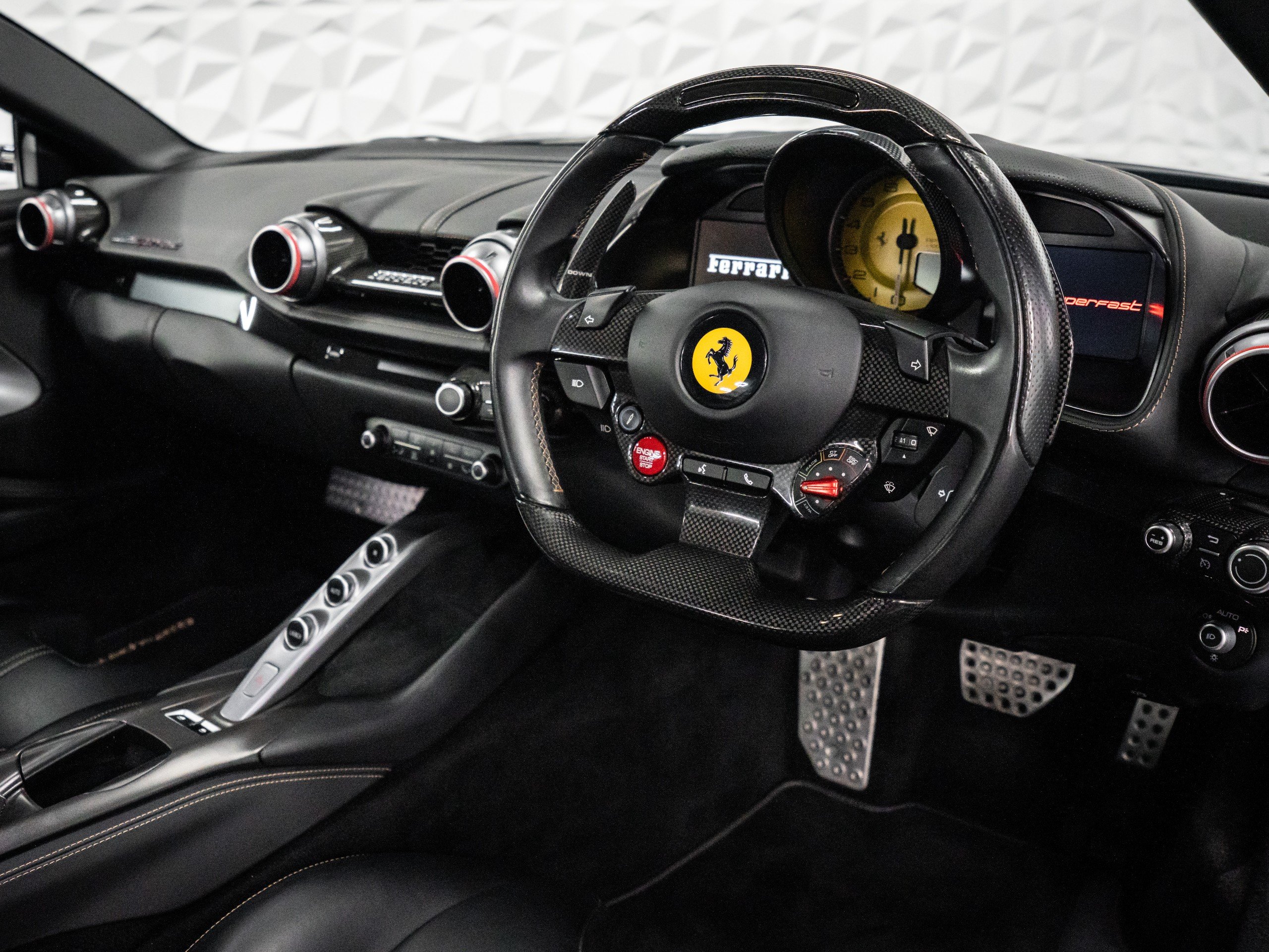 This 812 Superfast Comes With Extensive Carbon Fibre Options Including: Carbon Fibre Front Spoiler, Carbon Fibre Front Bumper Mouth Piece, Carbon Fibre Side Skirts, Carbon Fibre Rear Bumper Package, Carbon Fibre Diffuser, Carbon Fibre Rear Boot Trim. Additional Options Include, Scuderia Ferrari Shields, Adaptive Headlights With SBL Function, Suspension Lifter With